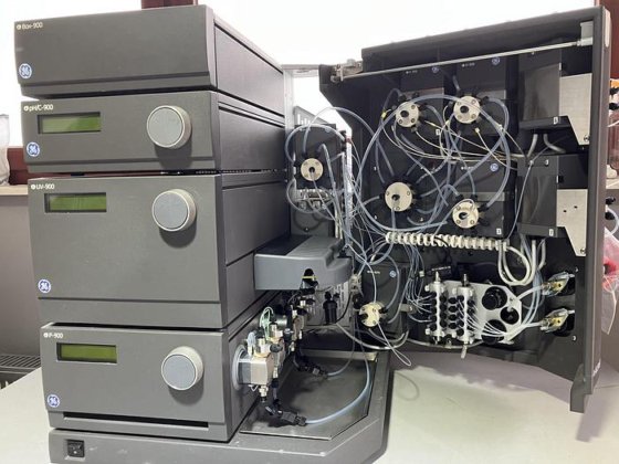 ÄKTA oligopilot plus is a compact, pump-driven system for small-scale synthesis design in two different scale ranges: 10 – 50* μmol and 50 µmol – 9* mmol. It is a flexible, cost-efficient, and fully automated synthesizer employing flow-through synthesis technology. The instruments are designed for research and process development of oligonucleotide synthesis process.